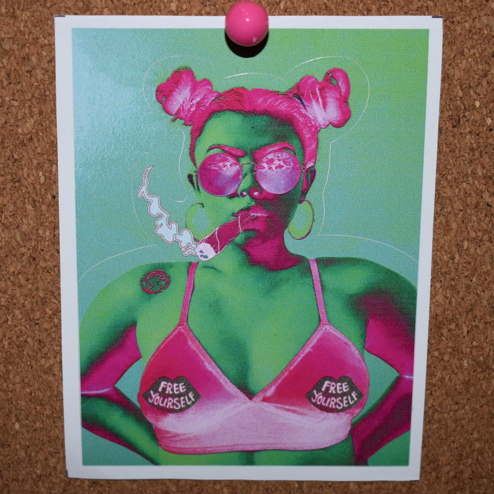 Green and pink colorway sticker with our model in the classic It’s Me Bitch pasties