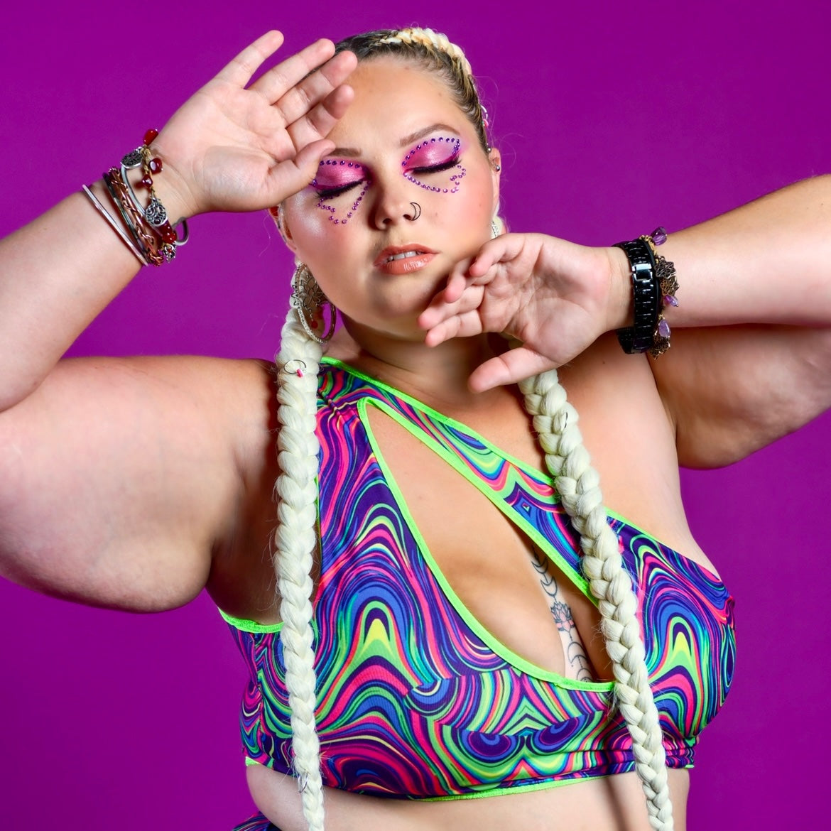- Model reference: bust 36", waist 33", DD cup, wearing size XL