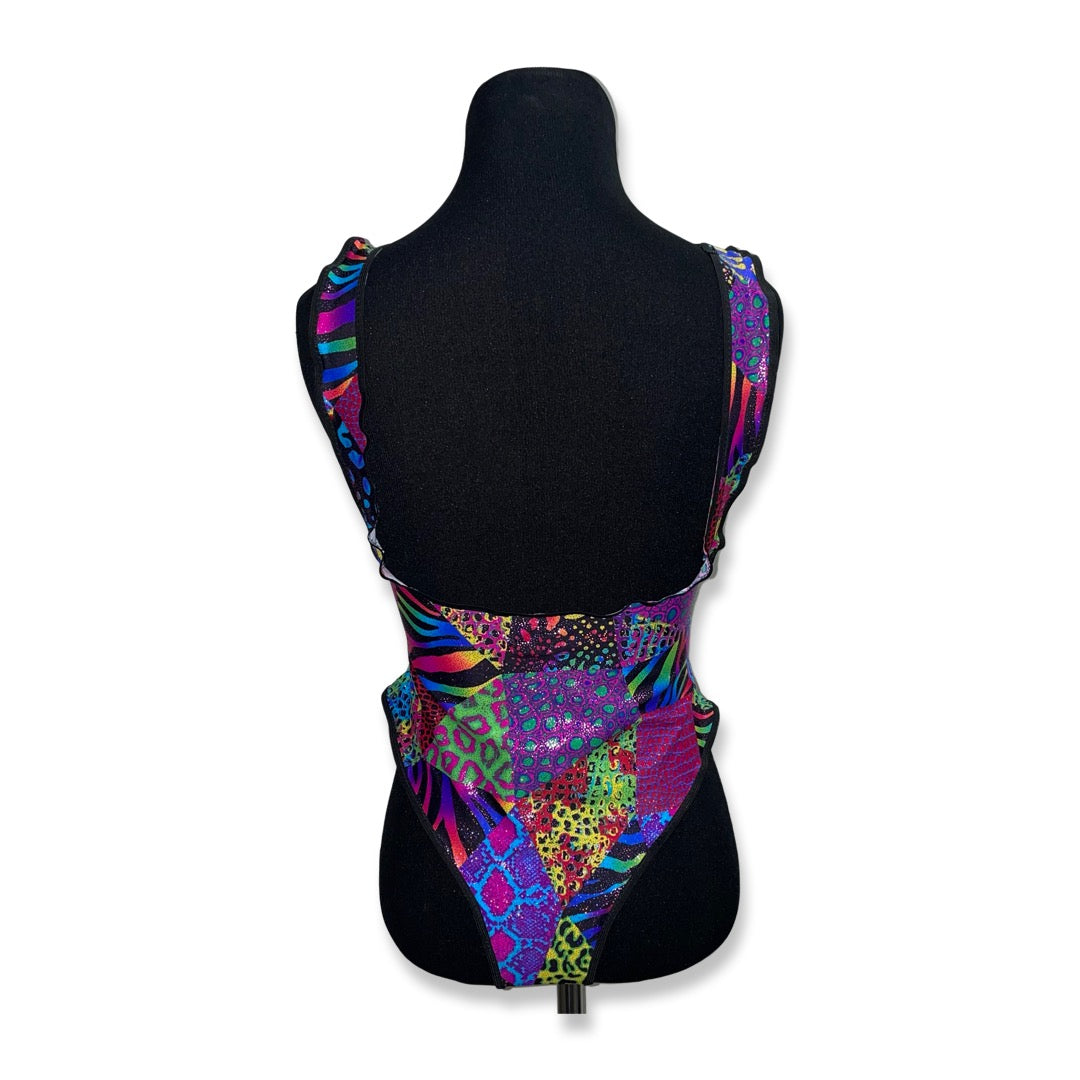 - Lisa Frank printed one piece perfect for festivals and pool parties