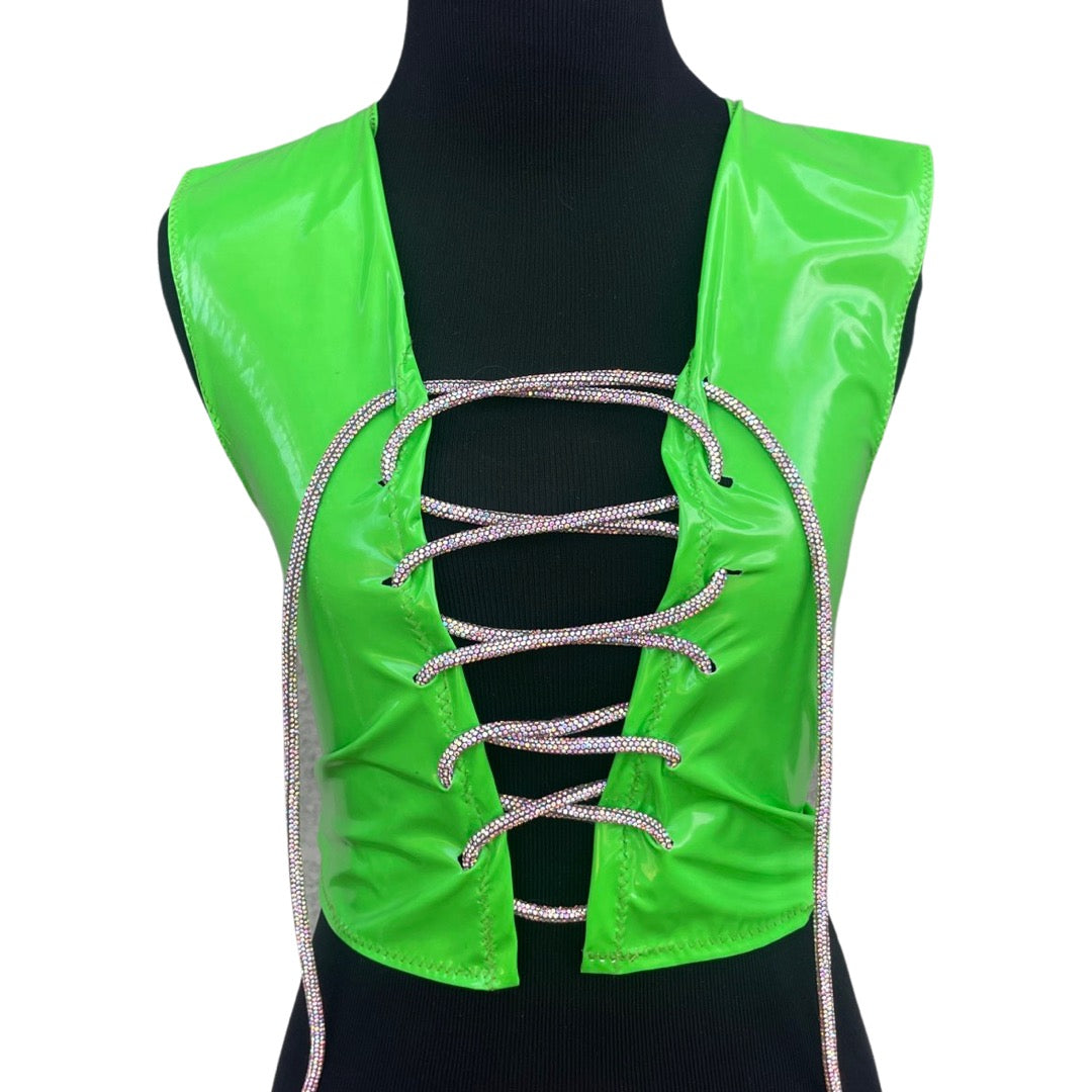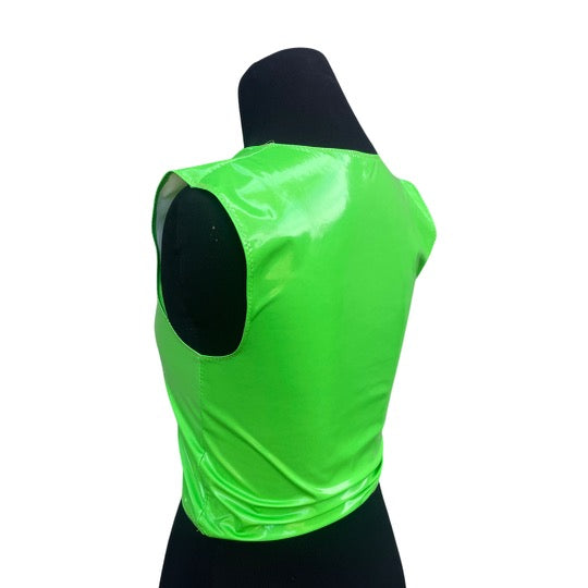 - made with neon green 4 way slight stretch vinyl fabric (faux leather)