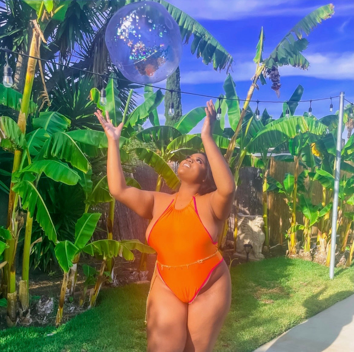 - Model reference: 50" bust, 41" waist, 49" hips, F cup, wearing size 2XL